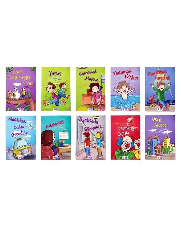 Set içinde; Adını beğenmeyen çocuk, Yarış, Hamarat merve, Yaramaz nedim, Parktaki hayalet, Martılar balık yiyebilsin, Arkadaş, Tiyatroda sürpriz, Oyuncağın sırrı ve Okul arsası kitapları yer almaktadır.