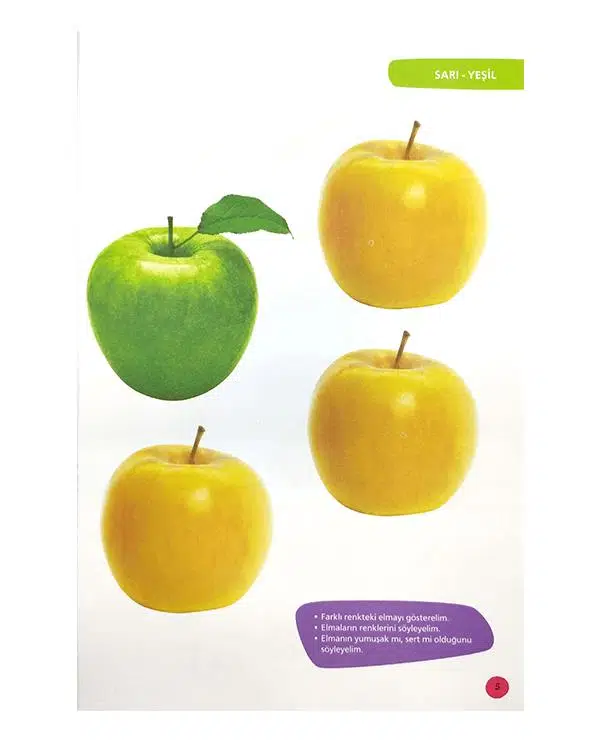Renklerle ilk karşılaşacakları gerçek objelerin fotoğrafı kullanılmıştır.