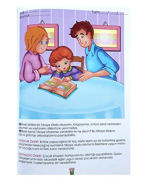 Çocuğumuzun Ailesiyle yaptıklarını pekiştirmek için üretilmiş olan aile katılım kitapları aileler için eşsiz bir katılım aracıdır. Zengin, anlaşılır, öğrenmeyi kolaylaştıracak görsel anlatım vardır.