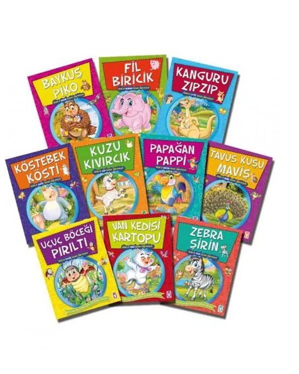 Set içerisinde; Baykuş Piko, Köstebek Kösti, Papağan Pappi, Zebra Şirin, Fil Biricik, Kuzu Kıvırcık, Uçuş Böceği Pırıltı, Van Kedisi Kartopu, Kanguru Zıp Zıp ve Tavus Kuşu Maviş yer almaktadır.