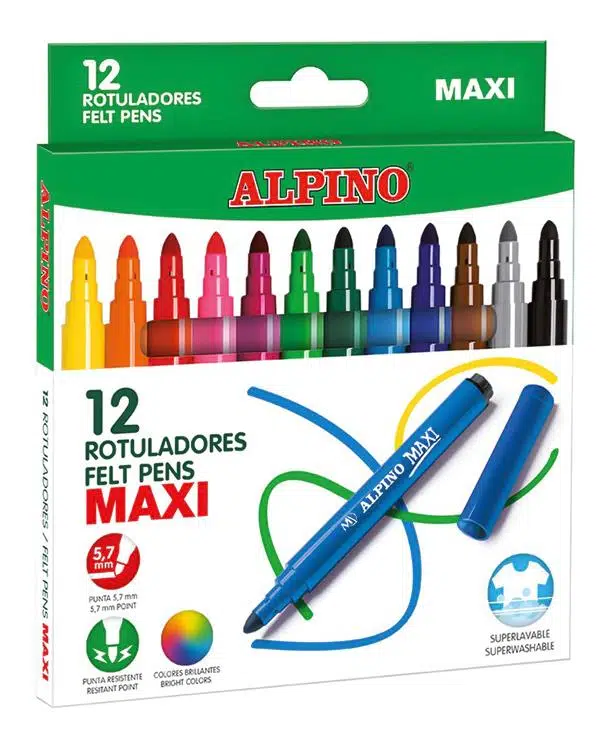 Alpino Maxi 12 Renk Kalın Uçlu Keçeli Kalem, yaratıcı projeler için ideal bir kalemdir.