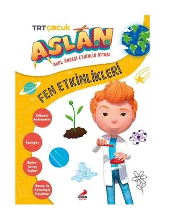 Bu kitapta 5-6 yaş çocukların inceleme, sorgulama, nedenleri araştırma, deney ve gözlem yapabilme, sonuçları kavrama yeteneğini destekleyecek etkinliklere yer veriliyor. Hayvanlar, bitkiler, doğa olayları, Dünya, madde ve uzay gibi konuları içeren kitap, Aslan karakterinin renkli dünyasıyla çocuklara sunuluyor.