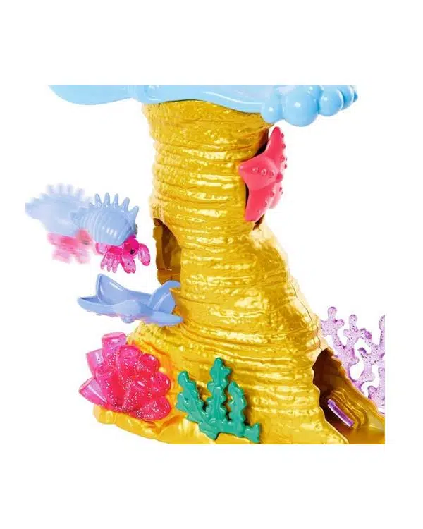 Bu set, Chelsea Deniz Kızı Bebek ve birlikte zaman geçirmeyi çok sevdiği dört minik deniz canlısı dostuyla büyülü hikâyelere ilham verir. Mercan resiflerinden ilham alan oyun seti, saklanma yerlerine ve hayvan dostların oyun oynayabileceği geniş bir alana sahiptir. Deniz kabuğu bebek arabası, çıngırak, biberon, top, bakım ve dostluk hikâyelerine ilham verir.