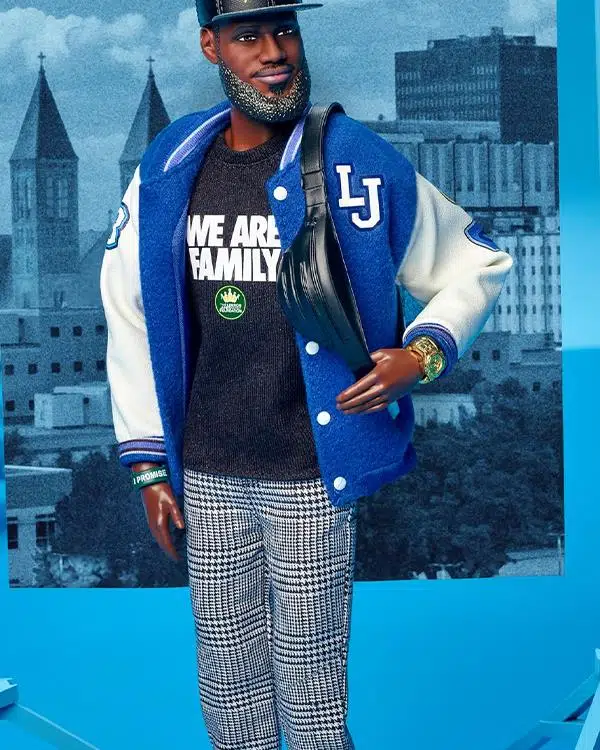 Barbie İmzalı LeBron James Kenbassadors Bebek HRM33, ünlü basketbolcu, yazar, aktivist ve bağışçı LeBron James’in stilini ve değerlerini yansıtan özel bir koleksiyon figürüdür. Varsity ceketinde “23” numarası, “We Are Family” yazılı tişörtü ve LeBron James Family Foundation rozetleriyle dikkat çeker. Yanında kare desenli pantolon, özel tasarım spor ayakkabıları ve stilini tamamlayan aksesuarlar; kulaklık, güneş gözlüğü, bel çantası ve bileklik ile gelir. Beyzbol şapkası, ceket yamaları ve tişört baskılarıyla desteklenen tarzı, hem sportif hem de sokak modası ruhunu yansıtır.