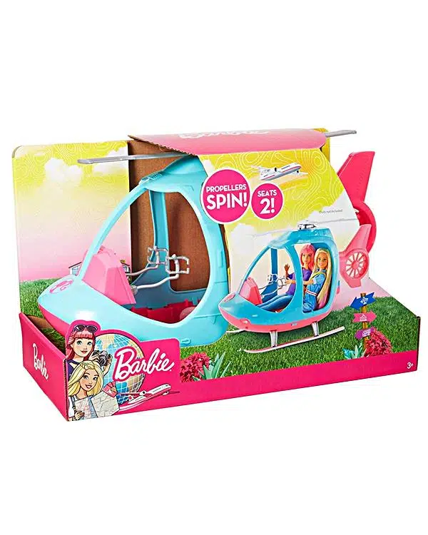 Barbie bebek ailesi ve arkadaşlarıyla heyecan verici dünyayı keşfetmek amacıyla sabırsızlanıyor. Helikopter, parlak pembe, mavi renklerle geliştirilen gümüş renkli pervaneye sahiptir. Çocukların hayal gücünün gelişmesine yardımcı olmaktadır.
