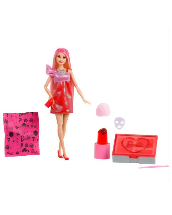 Hediye kutusundan ilham alan şık ambalajında gelen bu özel Barbie seti, 10 heyecan verici sürpriz içerir. Kutuyu açtığınızda sizi ilk olarak partiye hazır, şık Barbie bebek karşılar. Ardından fırçayı suya batırarak gizli bölümleri açın, aksesuarları ortaya çıkarın ve ruj şeklindeki kavanozdaki slime’ı sıkarak sevimli evcil hayvanı keşfedin!