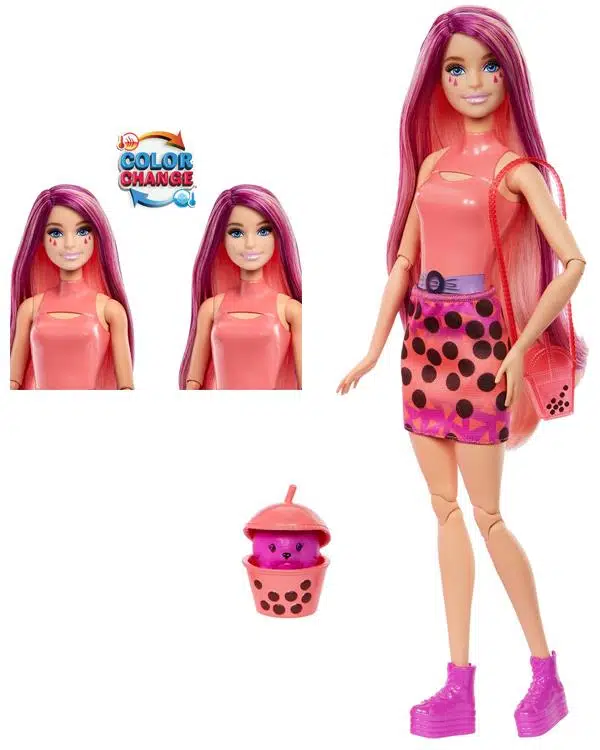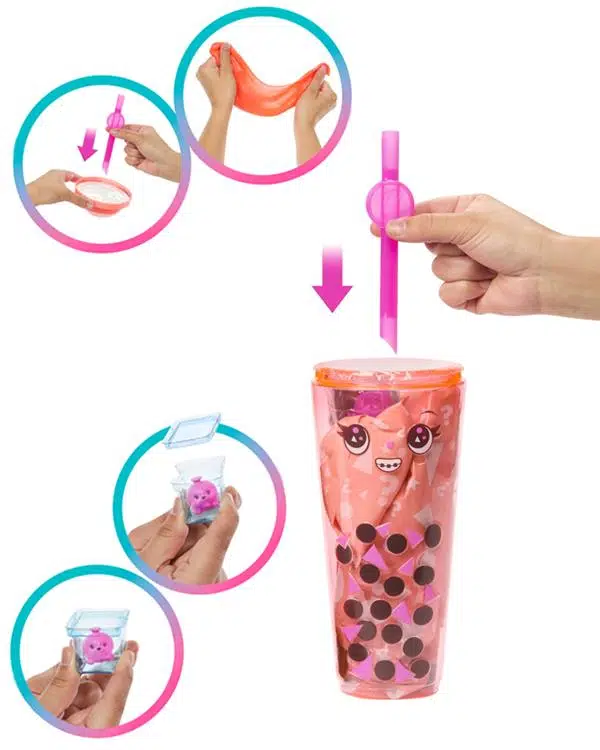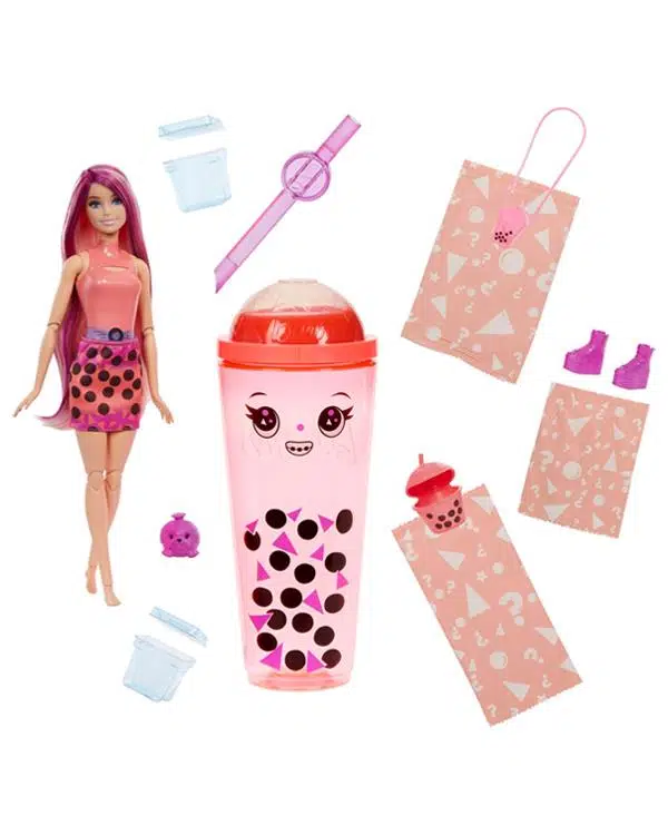 Çocuklar Pop Reveal Bubble Tea Serisi ile tanışın. Barbie Pop Reveal Bubble Tea Serisi tek pakette 8 duyusal kutu açma deneyimi sunar. Ambalajın dış katmanını çıkarınız, bardağı açınız ve sürpriz poşetleri çıkarınız. İçinden etek ve bir çift ayakkabı çıkan, yeniden kullanılabilir iki buz küpünü ortaya çıkarmak için paketi açmaya devam ediniz. Gizemli paketlerde, Barbie bebek, slime'lı bardak, pipet, kapak, çanta ve bebeğin tarzına uygun, yumuşacık ve kokulu bir evcil hayvan mevcuttur. Bebeğin yüzünü dönüştürmek için soğuk su kullanabilirsiniz. Eski haline döndürmek için ise ılık su kullanıp bu renk değişimini eğlenceli hale getirebilirsiniz. Çocuklar böylelikle sınırsız hayal dünyasında kendilerini geliştirir. Barbie Pop Reveal Bubble Tea Serisi oyuncakları çocukların sosyalleşmelerine katkı sağlar.