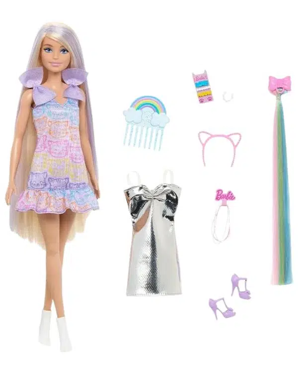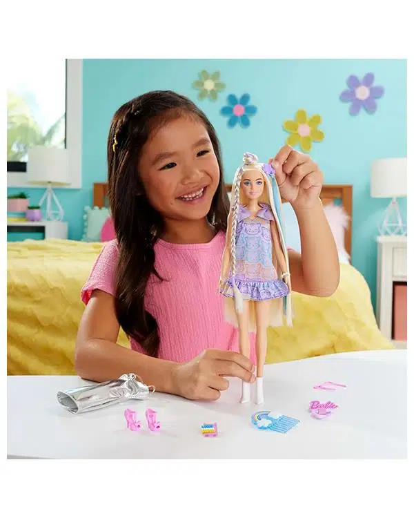 3 yaş ve üzeri çocukların kullanımı için uygundur. Barbie’nin uzun ve gösterişli saçları ile eğlenceli oyunlar oynayabilirsiniz. Bu oyun seti, Barbie’nin saçlarında farklı tasarımlar deneyip,şekillendirmenize olanak sağlar. Düz saç mı kullanmak istersiniz, örgülü mü ya da kendi şeklinizi yaratmak mı istersiniz? Ek saçları, tokaları ve diğer aksesuarları ile daha gerçekçi hale getirip hayal gücünüzün sınırlarını aşabilirsiniz. Bu Barbie bebeği çocuklarınızın çeşitli hikayeleri hayal etmelerini teşvik ederken aynı zamanda yaratıcılıklarının ve oyun kurma becerilerinin gelişimini destekler.