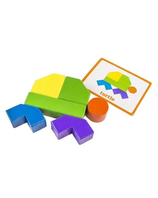 21 renkli ahşap bloğu kullanarak 4 etaptan oluşan 50 farklı resmi yapmaya çalışın. Farklı düzey ve boyutlardaki bloklar bağlantısal düşünme, problem çözme, matematiksel düşünme ve odaklanma becerilerini geliştirir.