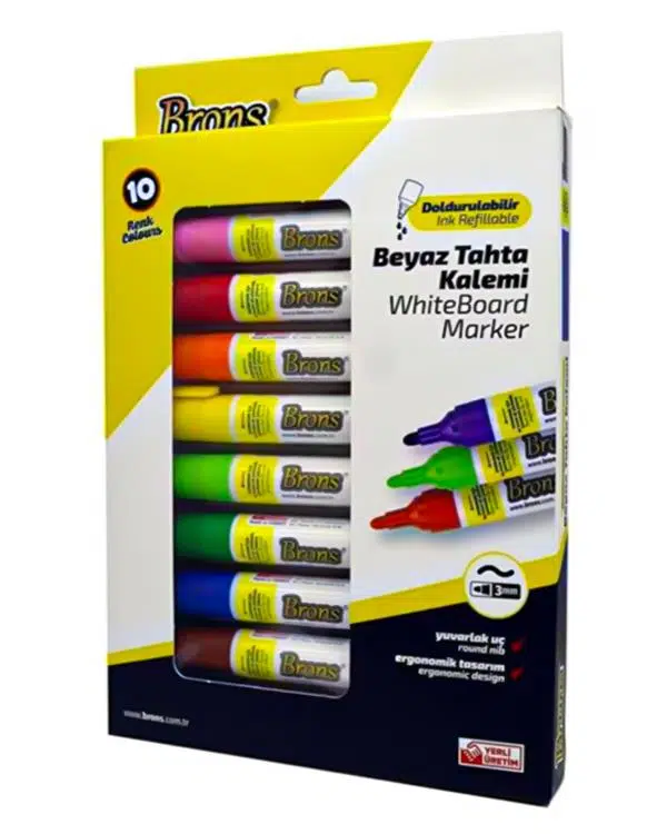 Brons Doldurulabilir Tahta Kalemi 10'lu Set, beyaz yazı tahtalarında mükemmel yazım deneyimi sunar. Eğitim ve ofis ortamları için idealdir.