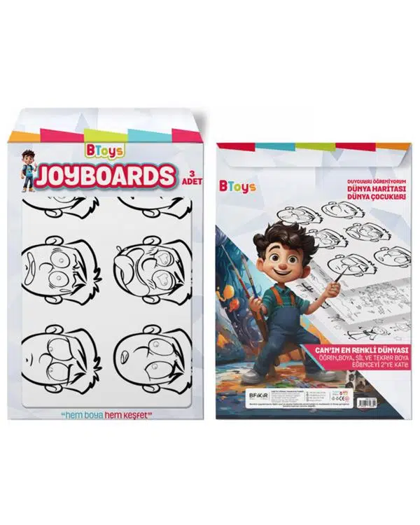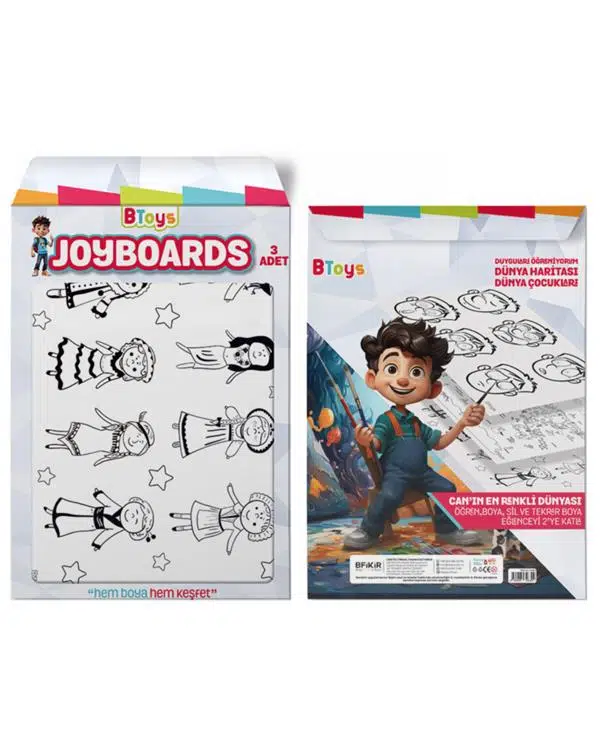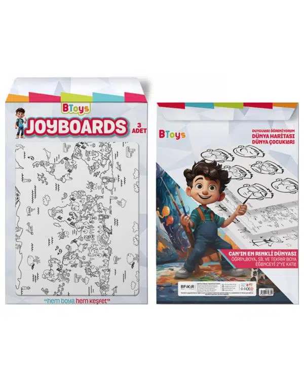 Btoys Joyboards 3`lü Set, çocukların dünyayı keşfetmelerine ve farklı kültürleri öğrenmelerine yardımcı olacak eğitici ve eğlenceli boyama panoları sunar. Bu set, dünya haritası ve dünya çocukları temalı panolardan oluşmaktadır. Çocuklar, bu panolar sayesinde farklı ülkeler hakkında bilgi edinirken, boyama aktiviteleri ile yaratıcılıklarını geliştirecekler.
