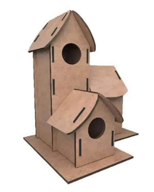Ahşap kuş evi 3 mm lazerle kesilmiş mdf den oluşmaktadır. Kuş evi çocukların el becerilerinin arttırılması veya yetişkinlerin iyi vakit geçirmesi amacıyla tasarlanmış bir materyaldir. Ürün oluşturulduktan sonra ev süsü veya gerçek kuş evi olarak kullanılabilir.