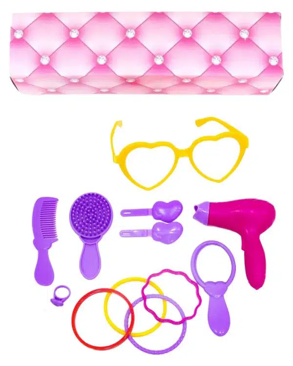 İçerik: Genellikle makyaj malzemeleri (ruj, oje, fırça vb.) ve aksesuarlar gibi oyuncak ürünler içerir. Bu ürünler gerçek makyaj malzemelerine benzer şekilde tasarlanmıştır, ancak tamamen güvenli ve çocuk dostudur.