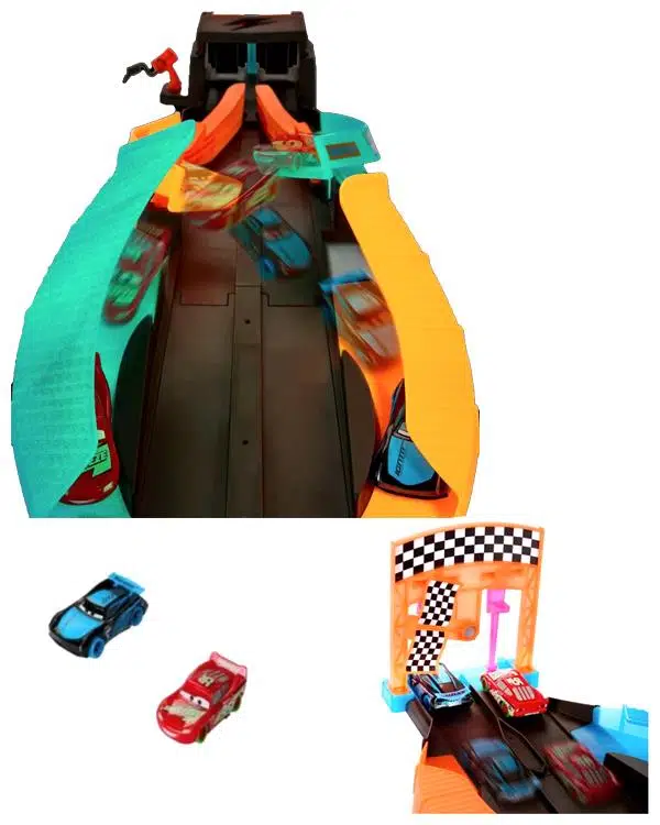 İki oyun oynama yolu ve karanlıkta parlama özellikleriyle çocuklar, "gündüz modunda" yapılandırıldığında yarışçıları doğrudan karşıya fırlatabilir veya "gece modu" çapraz akrobasi için yeniden yapılandırabilirsiniz. Dahil edilen 2 yarış arabasını 'gündüz modunda' doğrudan karşıya veya 'gece modunda' çapraz bir dublöre fırlatıp heyecanları ikiye katlayabilirsiniz.
