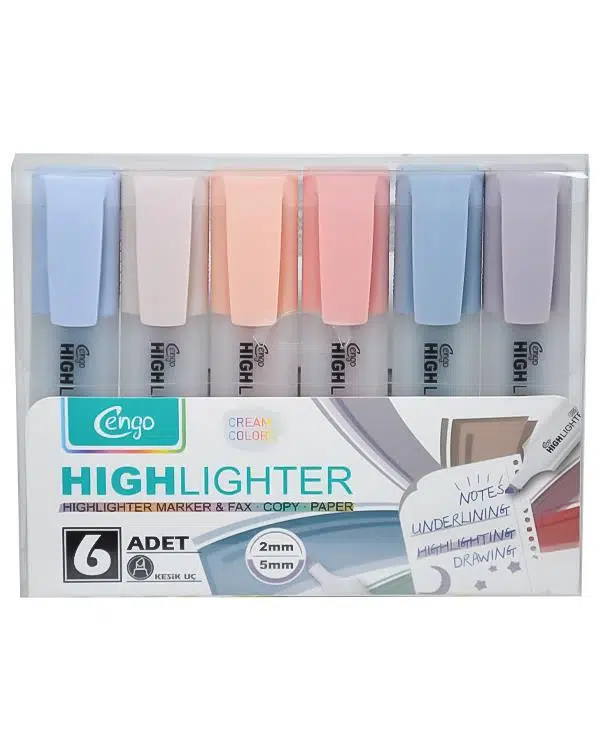 | Etiketler | Cengo 6lı Fosforlu Kalem Cream Renkler CGO804 |