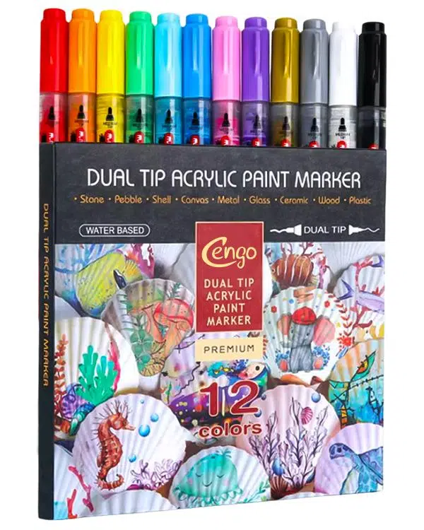 Cengo Çift Uçlu Akrilik İşaretleyici Kalem 12 Renk CGO604