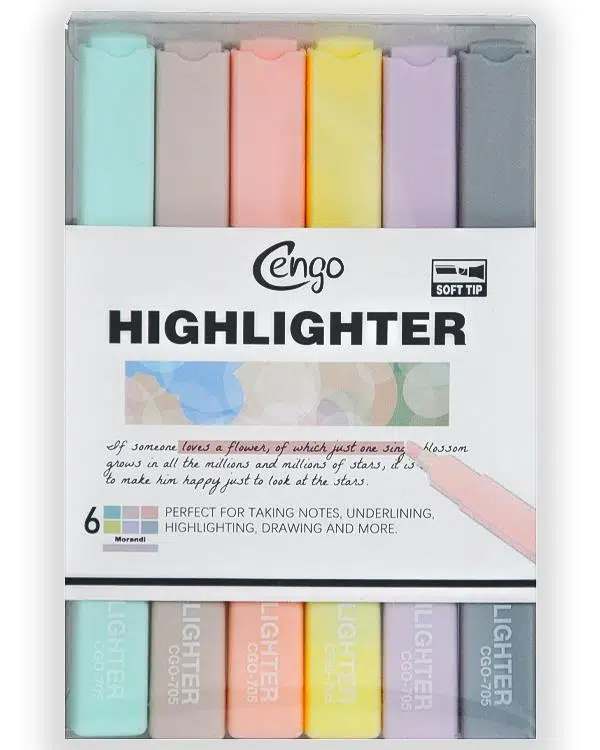| Etiketler | Cengo Kare Tipi Highlighter Fosforlu Kalem Morandi Renkler 6lı Set CGO705 |