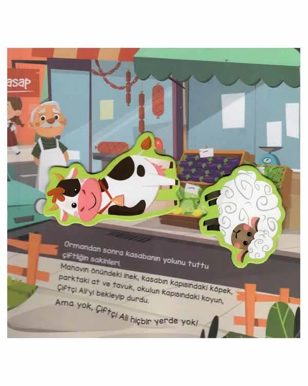 Çiftçi Ali’nin sevimli dostları “Merhaba” dedi yeni güne. Çiftçi Ali ortalıkta görünmüyordu, sevimli dostları meraklanıp onu aramaya başladı. Ama senin yardımın olmadan Çiftçi Ali’yi bulmaları imkansız! Çiftlikteki karakterleri metne göre yerlerine yerleştir, maceraya sen de katıl! 5 adet cırt cırt maket içerir. Çocukların el-göz koordinasyonu, problem çözme ve motor becerileri gelişimini destekler.