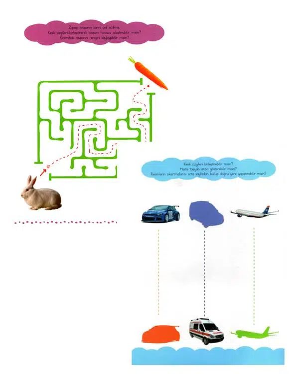Çocuklar, her sayfada yer alan yönergeleri takip ederek, dikkat ve psikomotor becerilerini geliştirecek, eşleştirme, ilişki kurma, tahmin etme, farklı olanı bulma gibi temel kavramları öğrenecek ve kitap içerisindeki çıkartmalarla eğlenceli vakit geçirecekler.