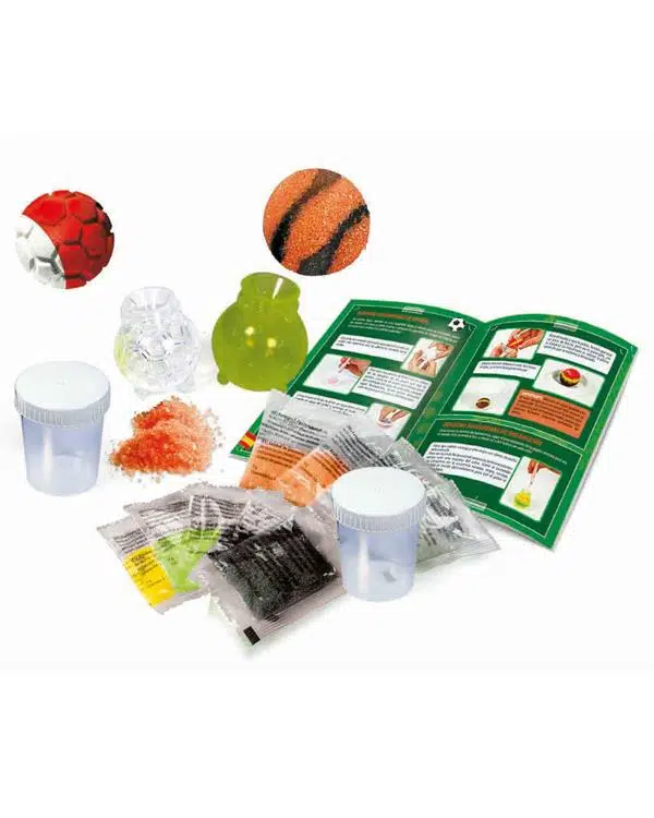 Futbol, basketbol ve tenis topları gibi zıplayan harika topları ve daha birçoğunu kendi elleriyle yapabileceği eşsiz bir bilim laboratuvarı sizleri bekliyor. Set renkli tozlar ve çocukların saatlerce sürecek çılgın bir için gerçekten zıplayan toplar yaratmak için ihtiyaç duyduğu her şey bulunmaktadır. Toplar güvenli ve tamamen zararsızdır.