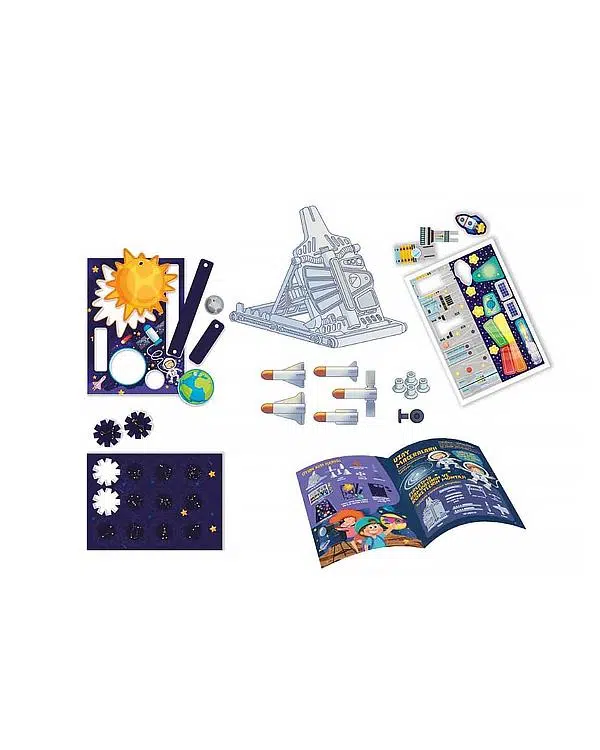 Model roketlerinizi fırlatma rampasına yerleştirin ve sonra onları fırlatın. Üzerinde gezegenlerin, yıldızların, meteorların olduğu, hedeflerinizi gösteren bir karton bulunur. Roketinizi seçtiğiniz hedeflerden birine yollayabilirsiniz. Güneş, Dünya ve Ay karton modellerinizi monte ederken çok eğleneceksiniz. Haydi eğlenceli uzay macerasına başlama vakti. Bilim ve Oyun Serisi, olası çözümler ve oyun senaryoları oluşturup icat ederken çocukların eğlenmesi için harika bir oyun deneyimi sunar. Farklı bileşenlerin bir araya getirilmesiyle çocuklar, kendi kurgularından hangi senaryoların hayata geçebileceğini somut olarak doğrular ve fikirleri kendi elleriyle şekillendirir.