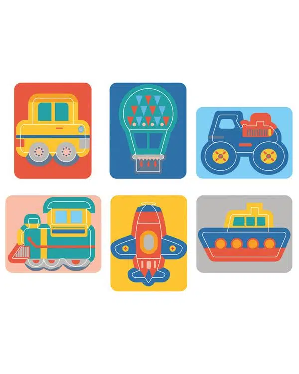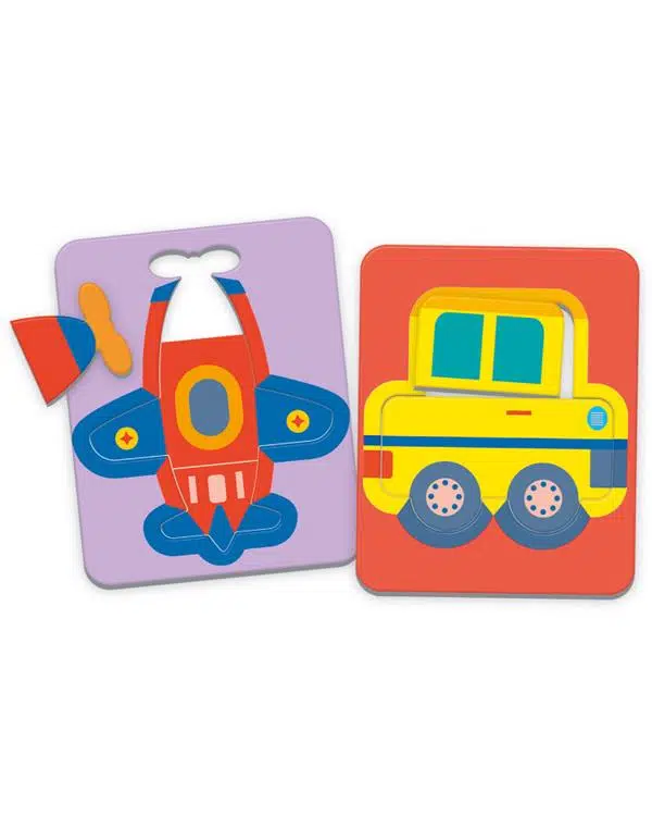 Her bulmaca, bir şekle uyan iki veya üç parçadan oluşur. Oyun, uçak ve araba gibi altı farklı ulaşım aracından oluşan 6 bulmaca içerir. Orijinal renklere sahip sade, tatlı ve yumuşak tasarımlı görseller, miniklerin ilgisini çekecek şekilde özel olarak tasarlanmıştır.