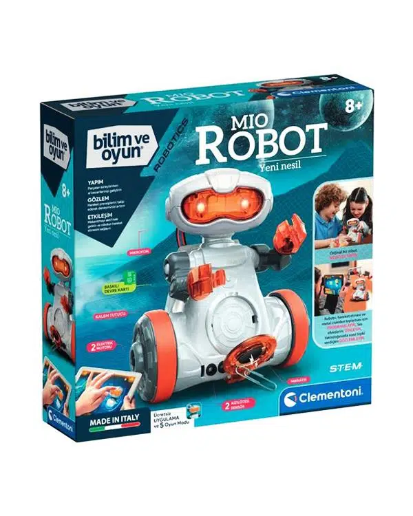 Gerçek bir robot oluşturmanıza olanak tanıyan gerçekten benzersiz bir bilim seti. Mio Robot, bir sürü elektronik bileşen ve ücretsiz uygulama sayesinde, robotik ve elektroniğin eğlenceli dünyasını keşfetmenize olanak tanır. Programlama uygulaması ile ses ve ışık efektlerini programlayarak eğlenceli komut dizileri oluşturabilirsiniz.