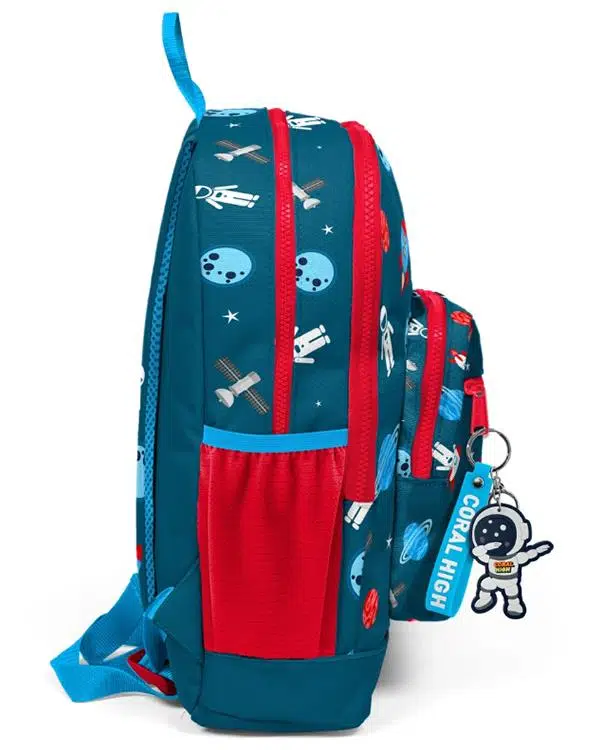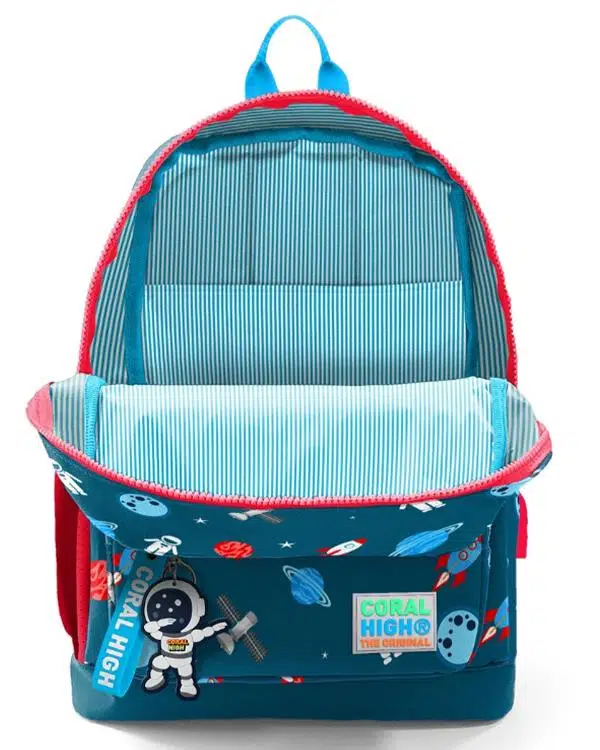 Coral High Kids Çivit Kırmızı Uzay Desenli Dört Bölmeli USB'li Okul Sırt Çantası 23290 ile çocuklarınız okula giderken hem şıklığı hem de fonksiyonelliği bir arada yaşayacak. Çocukların konforu ve güvenliği düşünülerek tasarlanan bu çanta, dayanıklı ve su geçirmez polyester + PVC kumaşıyla uzun ömürlü kullanım sağlar.