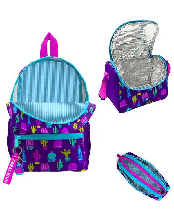 Coral High Kids Mor Pembe Kaktüs Desenli Desenli 3lü Okul Çanta Seti