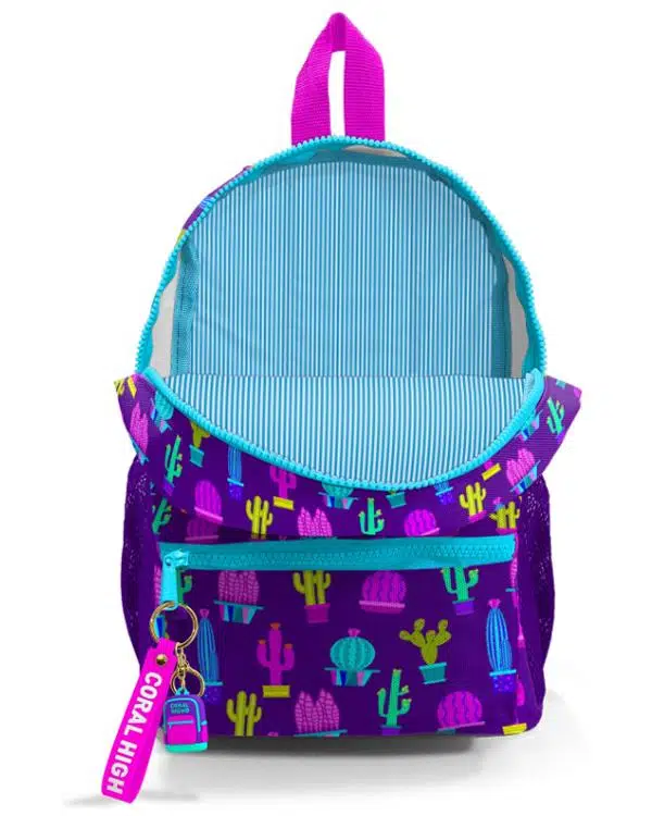 Coral High Kids Mor Pembe Kaktüs Desenli Dört Bölmeli USBli Okul Sırt Çantası 23273