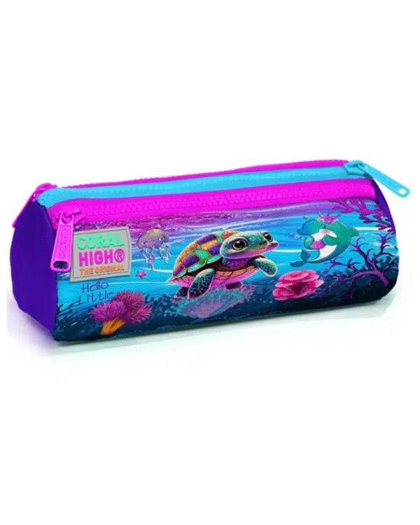 Coral High Kids Pembe Mor Kaplumbağa Desenli Üç Bölmeli Kalem Çantası, sevimli ve canlı tasarımıyla çocukların ilgisini çeken ideal bir seçim. Pembe ve mor renklerin uyumuyla göz alıcı hale gelen bu ürün, kaplumbağa desenleriyle eğlenceli ve neşeli bir görünüm sunar. Üç geniş bölmesi sayesinde kalemler, silgiler, cetveller ve diğer okul gereçleri düzenli ve kolay erişilebilir şekilde saklanabilir.