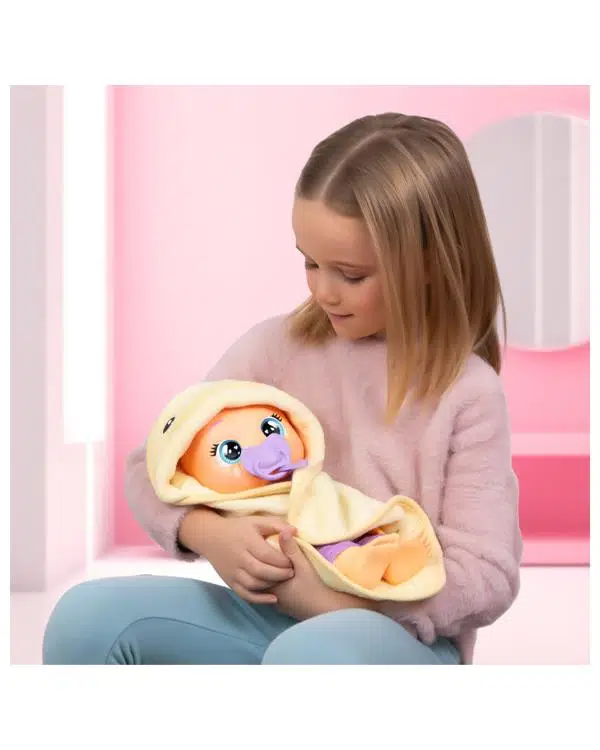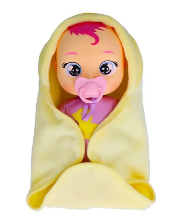 Cry Babies ailesinin sevimli bebeği Zoe ile banyo zamanına hazır olun! Su geçirmeyen Zoe, banyo sırasında bazen ağlıyor, bazen de kıkırdıyor. Emziği takıldığında hemen sakinleşir ve ağlamayı bırakır. 30 cm boyundaki Zoe, özel ördek desenli havlusu, banyo kıyafeti ve emziği ile birlikte gelir. Banyodan sonra yumuşacık havlusuyla kurulamak, çocuklar için oldukça eğlenceli bir deneyim sunar.