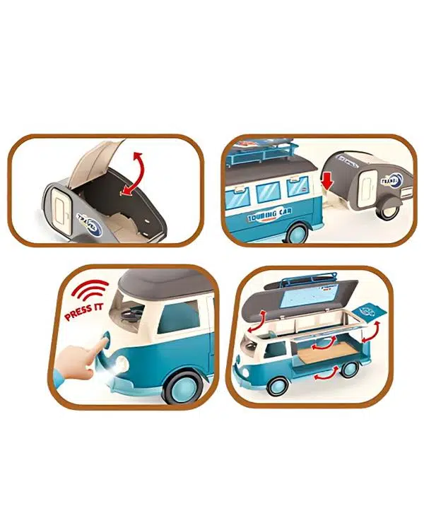 Ctoys Touring City Car SS115B, seyahat ve kamp tutkunları için mükemmel bir karavan tarzı araçtır. Taşınabilir yaşam alanı sunarak, konforlu ve pratik bir deneyim yaşatır. Bu minibüs, çocukların hayal gücünü harekete geçirirken, gerçekçi ses ve ışık efektleriyle dolu eğlenceli yolculuklar sunar.