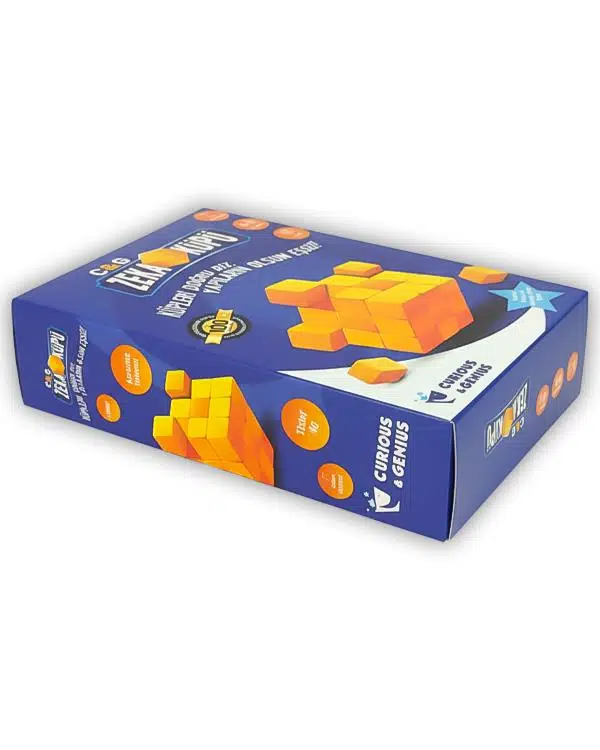 Kutu içeriğinde 1 adet Zeka Küpü, 70 adet kart ve 1 adet cevap anahtarı yer alır. Kurulumu kolay, oynaması keyifli bu oyun, çocukların eğlenirken öğrenmesini sağlayan harika bir seçenektir.