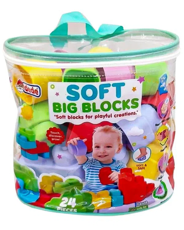 Dede Yumuşak Big Bloklar Çanta 24 Parça, çocuklar için tasarlanmış eğlenceli ve öğretici bir yapı oyuncak setidir.