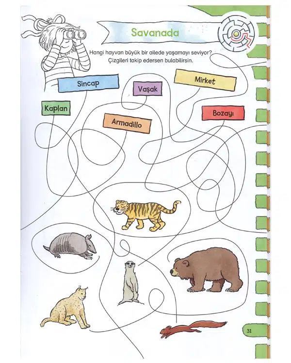 Kitap içerisinde; eşleştirme- fark bulma, basit deneyler, sudoku, labirent ve boyama gibiaktiviteler yer alır.