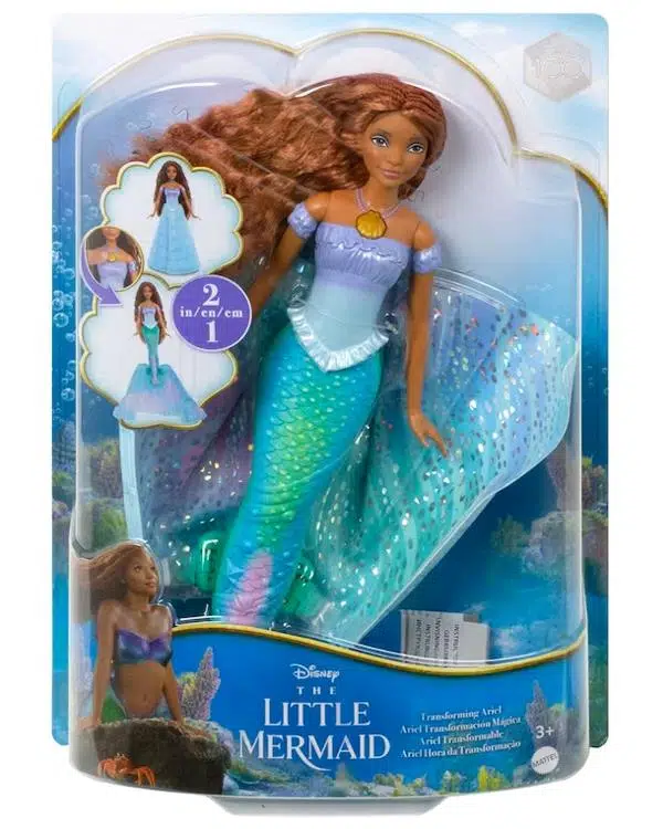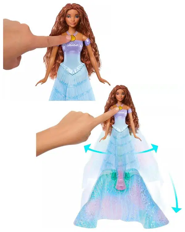 Heyecan verici sinema gösteriminden Disney'in Dönüşen Küçük Deniz Kızı Ariel bebeği ile bir sıçrama yapın. İnsandan deniz kızına dönüştüğünü görmek için deniz kabuğu kolyesini itmeniz yeterli! İmza niteliğindeki mavi elbisesi açılır ve güzel, çok renkli bir denizkızı kuyruğuna dönüşür. Hareketli moda bebeği, sonsuz şekillendirme eğlencesi için uzun saçlara sahiptir. Hayranlar, tüm Küçük Deniz Kızı bebeklerini toplayabilir ve dalgaların üstünde veya altında kendi maceralarını yaratabilir.