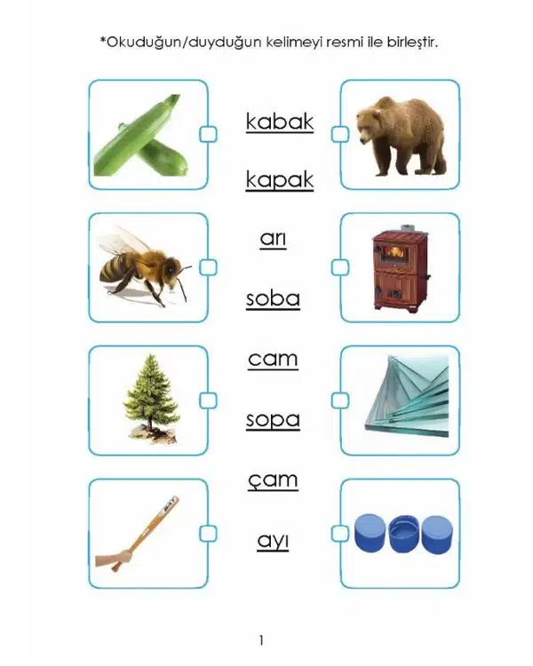 1. Kitap: 1-2-3 Hece Kelime - Oku/Dinle-Eşle/Göster