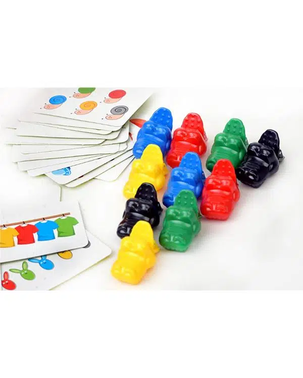 Arkadaşlarınızla birlikte hızla kartları çevirip, timsah figürlerini doğru yere yerleştirin. İlk uyum sağlayan kazanır, yanlış yapan kartını geri koyar. En çok ödül alan kazanan olur!