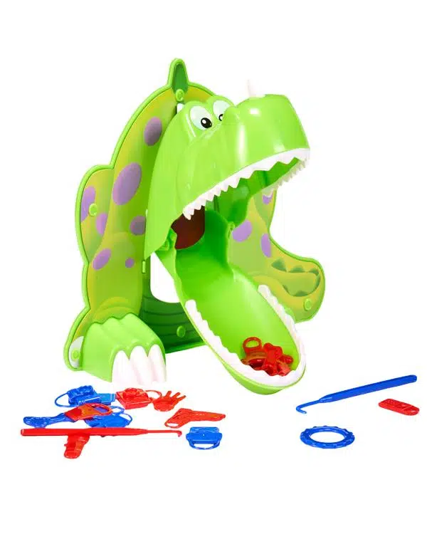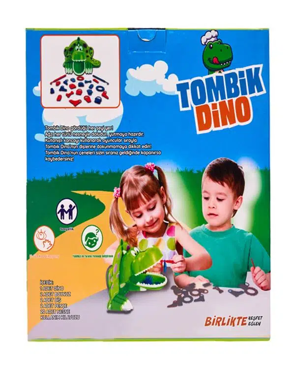 Nasıl oynanır: Tombik Dino gördüğü her şeyi yer, ağzı her türlü nesneyle doludur ve yutmaya hazırdır. Oyuncular, kullanışlı kancayı kullanarak sırayla Tombik Dino’nun dişlerine dokunmadan nesneleri çenesinin içine yerleştirmelidir. Çünkü Tombik Dino’nun çenesi kapanırsa kaybedersiniz.