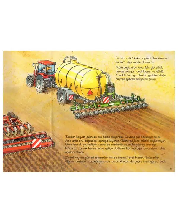 Bu kitap çocuklara tarım işletmeciliği ve çalışma alanı hakkında bilgiler veren bir öykü anlatıyor. Çocukların meslekler hakkında bilgi sahibi olmasına, toplumsal yaşam düzen ve işleyişini öğrenmelerine yardımcı olur.
