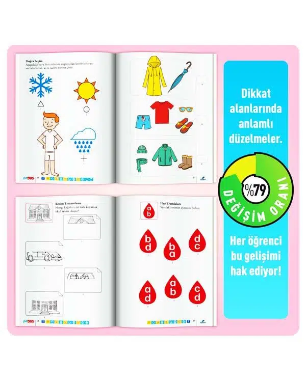 İlgili Hedefler; Dikkat ile alakalı asli egzersizlerin bulunduğu kolay ve anlaşılır yönergelerle çalışılan bir kitaptır.