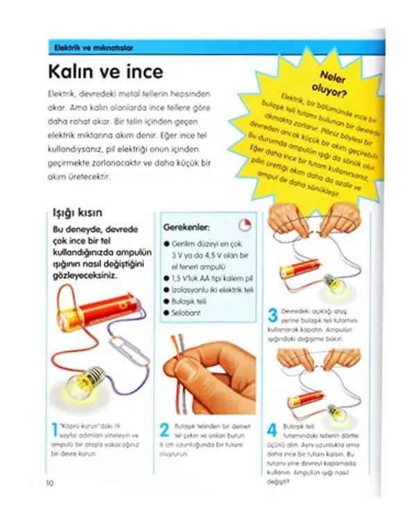 8 yaş ve üzeri çocuklar için uygundur. Bu kitapta bazıları klasikleşmiş, bazıları da yepyeni olan deneyler adım adım anlatılıyor. Etkinliklerin yönergeleri oldukça açık, illüstrasyonları da göz alıcı. Kitapta küçük bir sözlüğün yanı sıra yararlı internet sitelerinin adresleri de yer almaktadır.