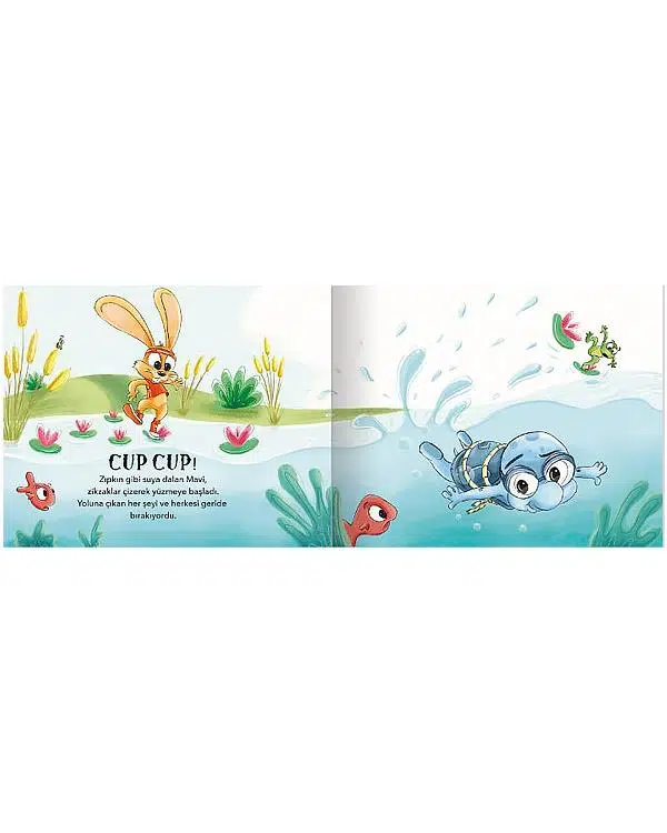 Mavi dünyanın en hızlı kaplumbağası olmaya kararlıdır. Ancak en büyük rakibi tavşan onu alt etmek için elinden geleni yapar. Mavi’nin tavşanı geçmek için artık pek ümidi kalmadığında, en parlak fikir en çaresiz olduğu anda aklına gelir. Kendini, kabuğunu ve sahip olduğu yetenekleri benimseyen ve kararlılıkla her şeyi yapabileceğini öğrenen Mavi, yarışta geride kaldığında bulduğu çözümle aklını kullanarak tavşanı geride bırakmayı başarır.