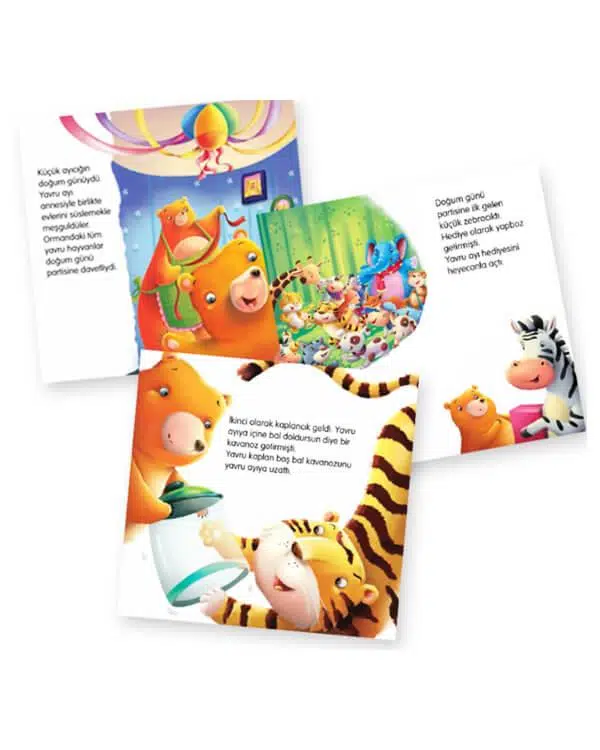 Meraklı küçük ayıcığın doğum günüydü ve partiye tüm orman hayvanlarının yavruları davetliydi. Bakalım partiye hangi hayvanların yavruları gelecekti ve yavru ayıcığa ne hediyeler almışlardı? Öykü esnasında sayfaların alt kısmında hayvanlar hakkında bilgilendirici açıklama yazıları bulunmaktadır. Çocuklarınızın hayal dünyasının gelişimini destekler. Çocuklar öyküler aracılığıyla yeni bir dünyaya açılır ve öykülerde kendilerine yer bulur maceraya ortak olur. Çocukların sevgi, arkadaşlık ve dostluk bağları hakkında bilgilenmesini ve gelişimini destekler.