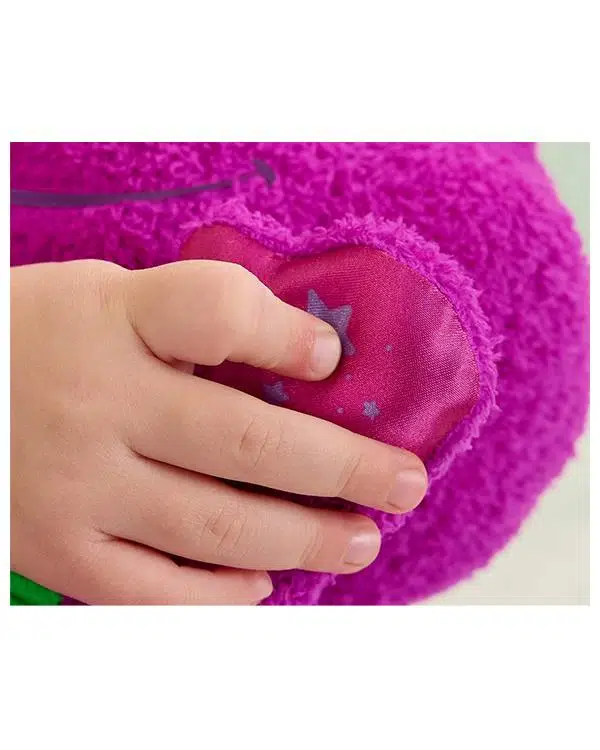 Bu oyuncak, 2 yaş ve üzeri çocuklar için idealdir; peluş dış yüzeyi nazik dokunuş sunar, farklı dokularla çocukların duyularını keşfetmesine yardımcı olur. Renkli ve tanıdık Barney tasarımı sayesinde hem sevilen bir televizyon karakterinden türemiş hissi yaratır hem de oyun saatlerini daha interaktif hâle getirir.