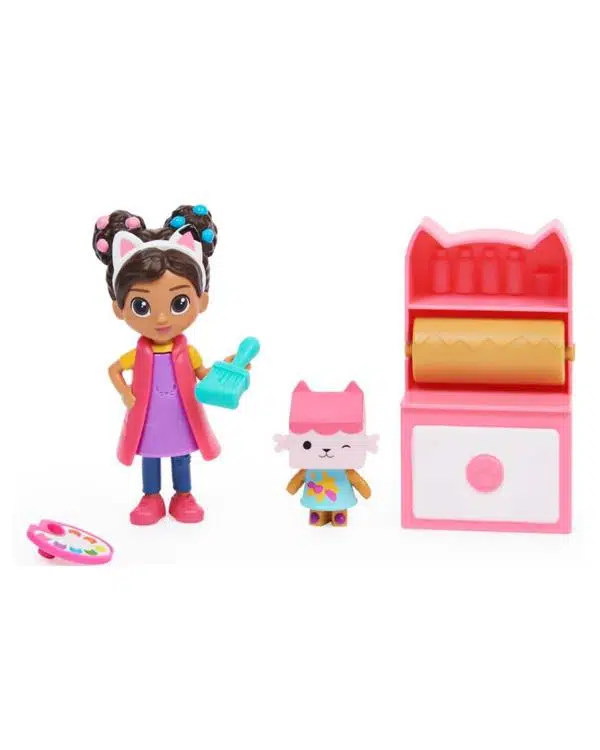 Kutu içinde, gabby kız figürü ,1 hayvan figürü ,1 mobilya parçası, 2 aksesuar.