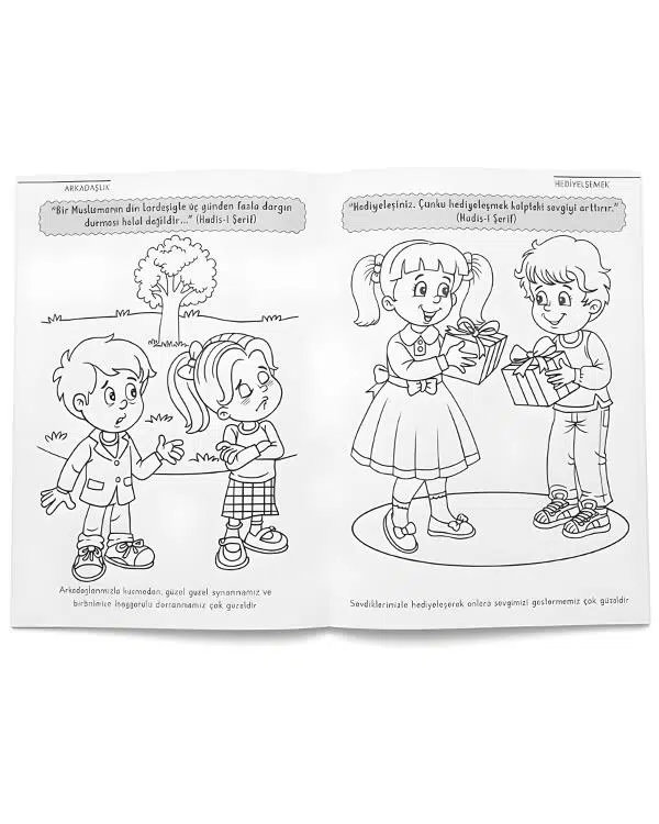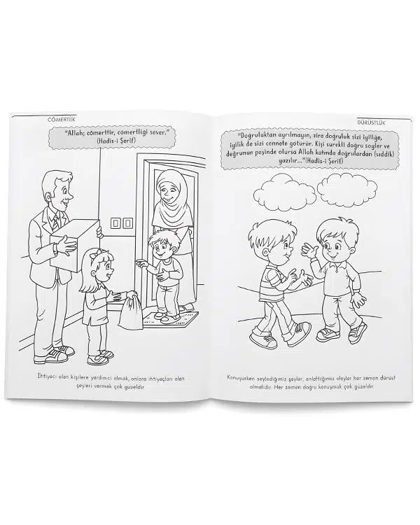 “Güzel Ahlakı Öğreniyorum – Renklerle Güzel Dinim”, çocukların temel ahlaki değerleri eğlenceli, renkli ve anlaşılır bir şekilde öğrenmesine yardımcı olan özel bir eğitim kitabıdır. Canlı çizimler ve akıcı anlatımıyla çocukların dikkatini çekerken; dürüstlük, paylaşma, saygı, sabır gibi değerleri günlük yaşamdan örneklerle işler.