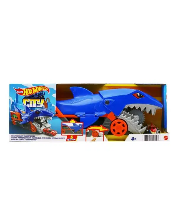Hot Wheels Köpek Balığı Taşıyıcı oyun seti, ikonik Shark Bite Hot Wheels otomobilini yeni ve havalı bir taşıyıcı olarak yeniden tasarlıyor.