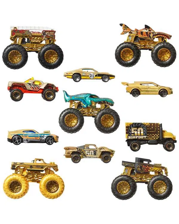 Hot Wheels Monster Trucks Bigfoot 50. Yıl Özel Seti, Bigfoot’un 50. yılını kutlamak için hazırlanmış 5 adet 1:64 Monster Truck ve 6 adet metal arabadan oluşan özel bir koleksiyon setidir. Tüm araçlar altın renkli yıl dönümü detaylarıyla tasarlanmıştır ve hem sergilemek hem de oynamak için idealdir. Setin içerisinde Bigfoot, 5-Alarm, Bone Shaker, Tiger Shark, Mega-Wrex kamyonları ile 6 adet metal araba bulunur; bu arabalardan ikisi 50. yıla özel desenlere sahiptir. Çocukların hayal gücünü ve oyun kurma becerilerini desteklerken koleksiyon meraklıları için de değerli bir parça sunar.